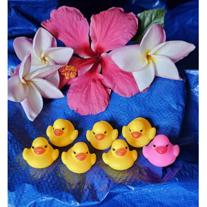 Seven Dinky Ducks (6 yellow, 1 pink), shipped in a resealable pouch along with your personal message.